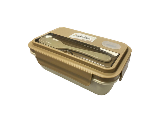 Plastic 2 Compartment Lunch Box with Spoon 20 x 12 x 8 cm Assorted Colours 7815 (Parcel Rate)