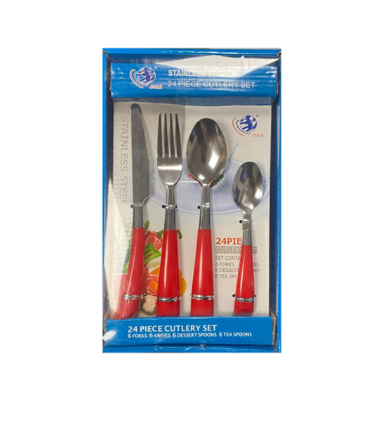 Stainless Steel Cutlery Set with Plastic Handle Set of 24 Assorted Colours 4184 (Parcel Rate)