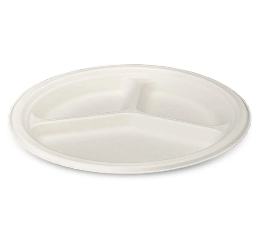 Disposable Compostable Eco-Bio Bagasse Sugarcane 3 Compartment Plates 10" Pack of 8 EC1963 (Parcel Rate)