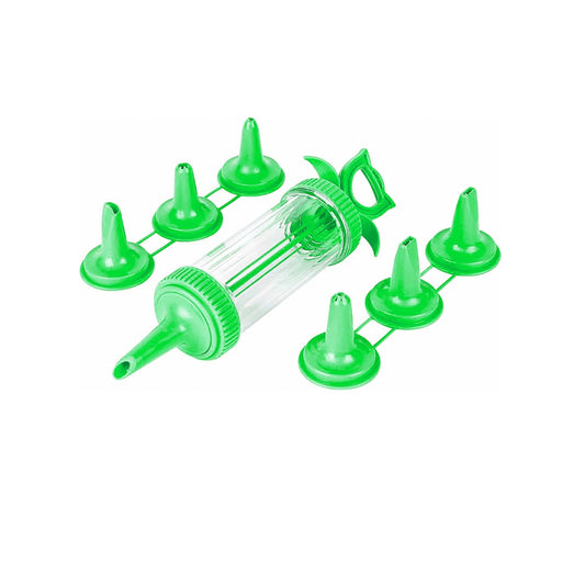 Plastic Icing Tube With 6 Nozzles Attached In Green 9266 (Parcel Rate)