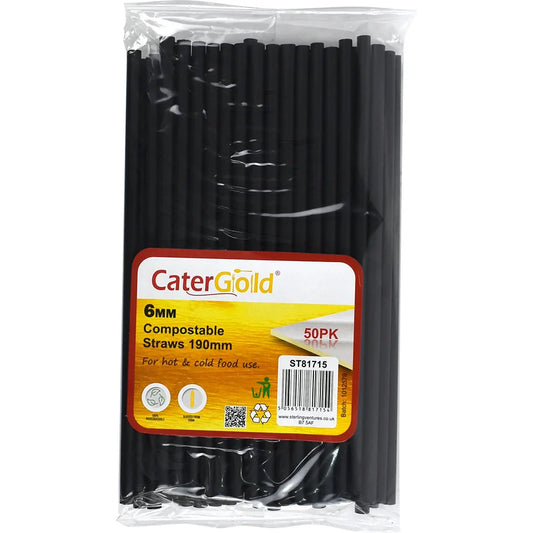 Compostable Plastic Straw 6 x 190mm Pack of 50 Assorted Colours ST81715 (Parcel Rate)