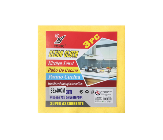 Kitchen Yellow Cleaning Cloths 38 x 40 cm Pack of 3 6378 A (Parcel Rate)
