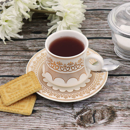 Coffee Tea Cup Set with Saucers Set of 12 Gold / White Assorted Designs 7528 (Parcel Plus Rate)
