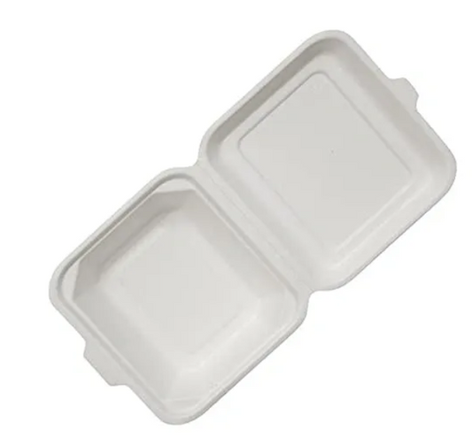 Disposable Compostable Eco-Bio Bagasse Sugarcane Clamshell Burger Box EC0966 (Parcel Rate)