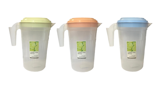 Transparent Plastic Water Juice Pitcher Jug with Cups 2400ml Assorted Colours 7435 (Parcel Rate)