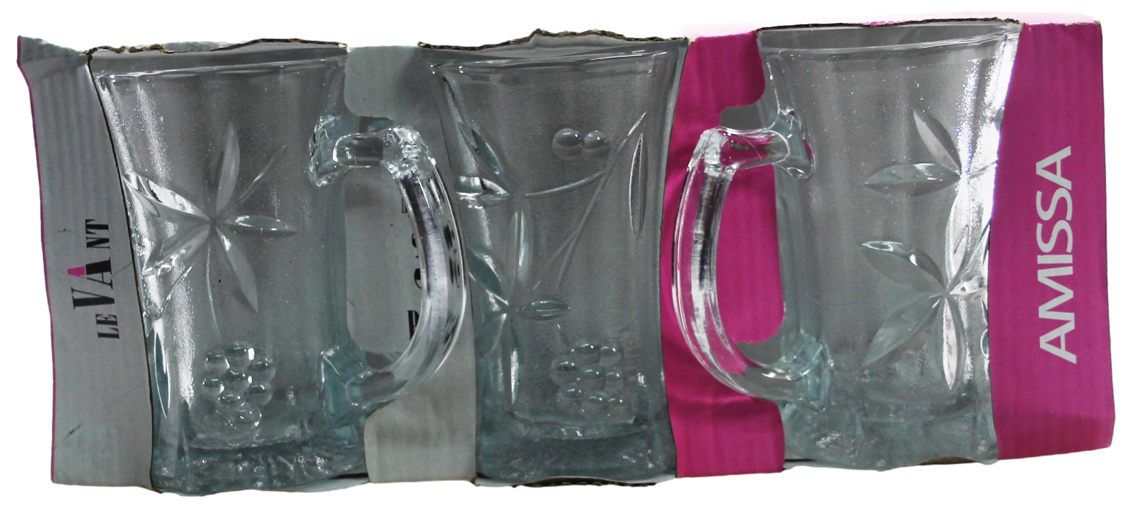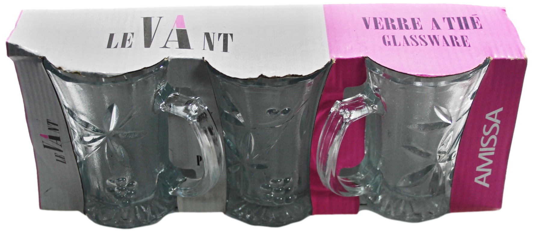 Amissa Tea Glass Cups with Handle and Floral Grape Design 171ml Set of 3 1542 (Parcel Plus Rate)