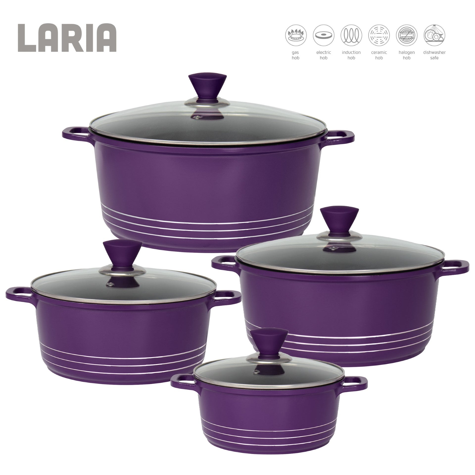 Laria Non Stick Die Cast Stockpot Pan Set 4pcs Purple 10880 (Big Parcel Rate)