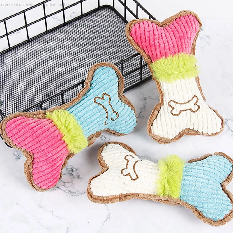 - Pet Dog Squeaky Soft Toy Dog with Green Fuzz