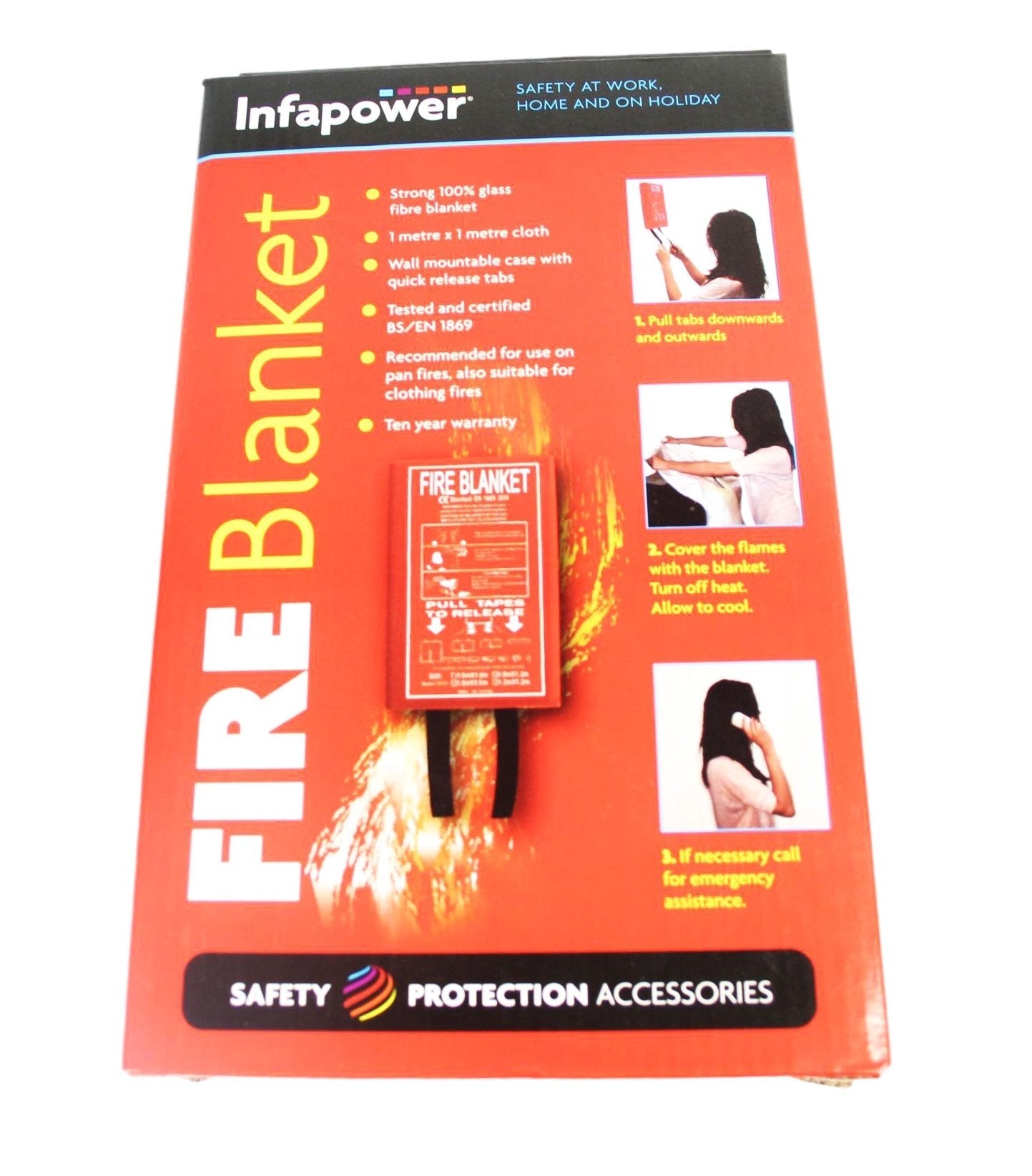 Infapower Emergency Fire Blanket Cloth 1 x 1m 100% Glass Fibre X102 (Parcel Rate)