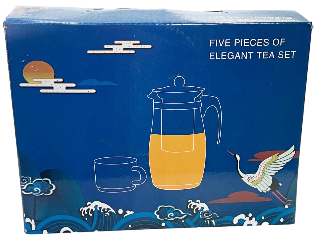 Elegant Glass Tea Pot with 4 Tea Cups Set of 5 Pieces 6661 (Parcel Plus Rate)