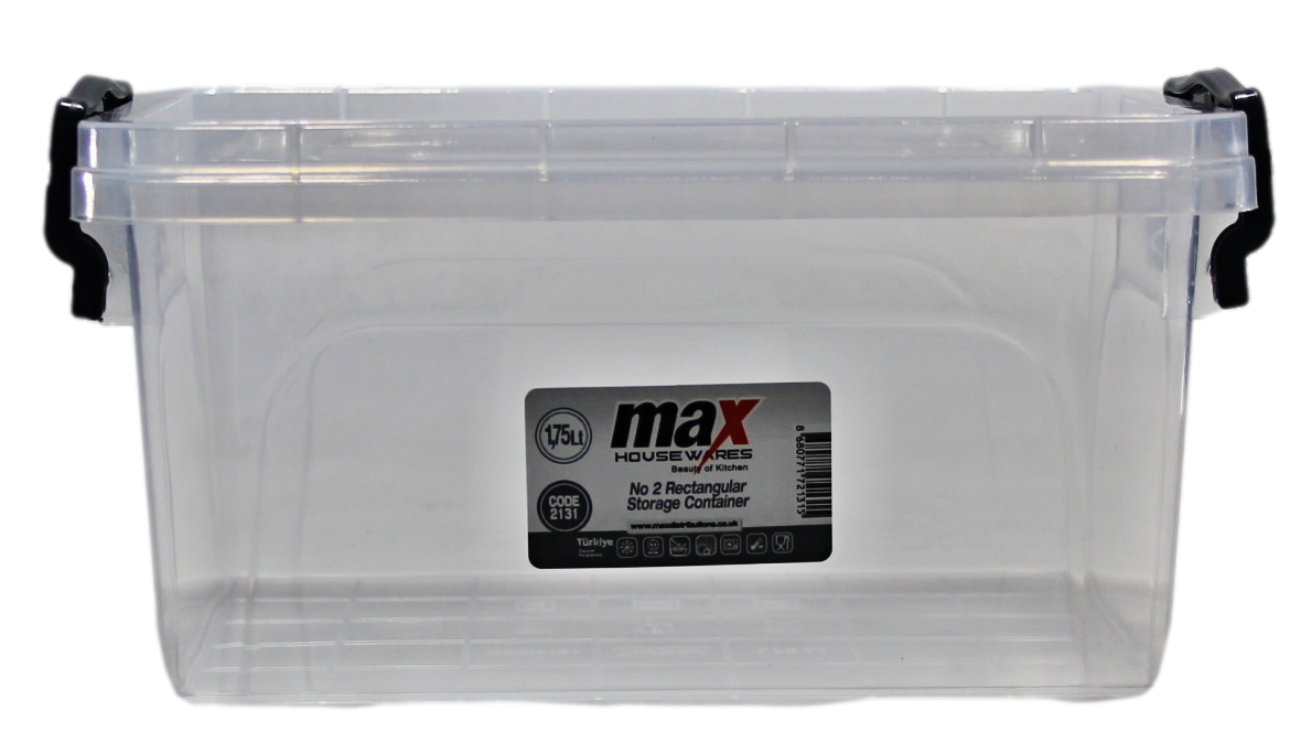 Clear Plastic Rectangle Storage Box 1.75 Litre 20 x 14 x 10 cm 2131 (Parcel Rate)